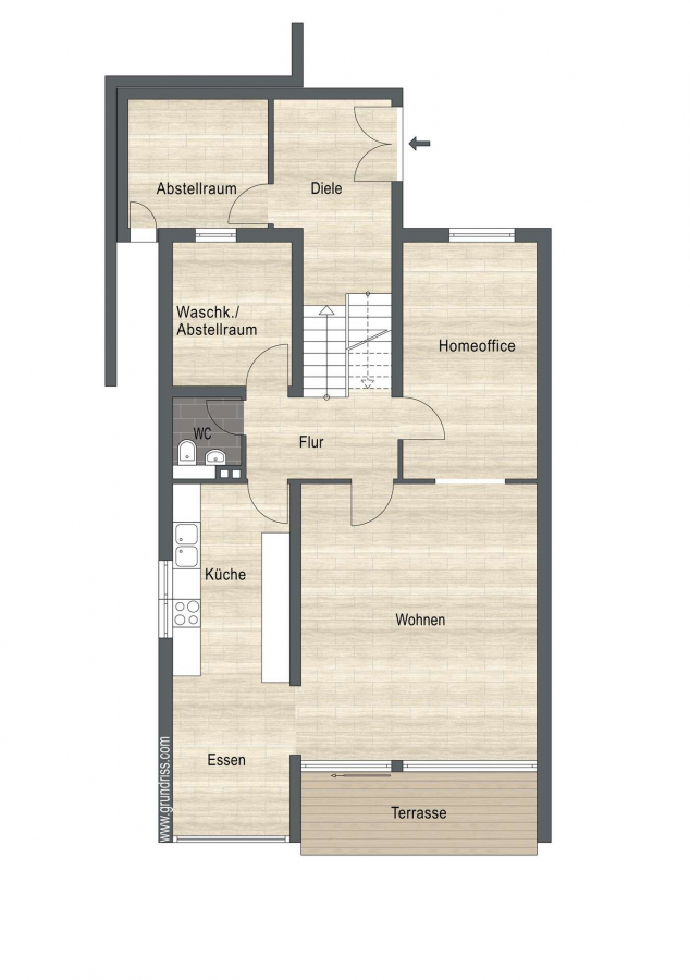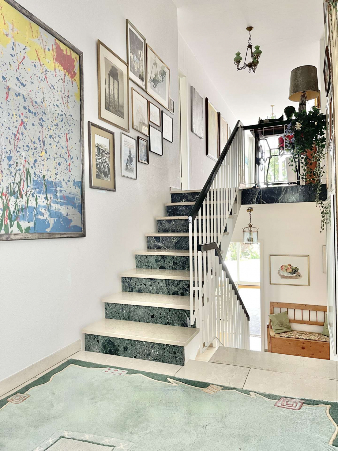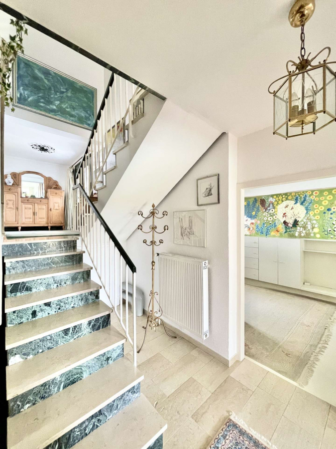 Die Wohnfläche erstreckt sich über zweieinhalb Geschosse. Die Eingangsebene verfügt über ein schönes Entrée mit einem Garderobenbereich sowie einem großzügigen Abstellraum, mit Zugang zum Garten.