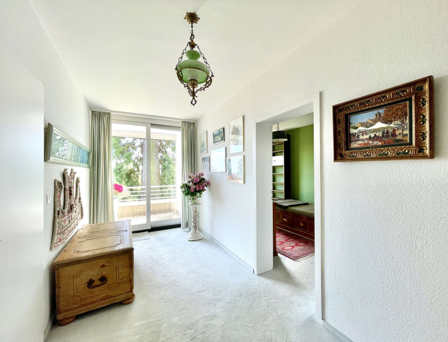 Das helle Obergeschoss verfügt über vier Schlafzimmer, einen hellen geräumigen Flur, ein Bad, ein separates WC sowie über einen schönen Südbalkon mit Fernblick, von dem man die abendlichen Sonnenuntergänge genießen kann.