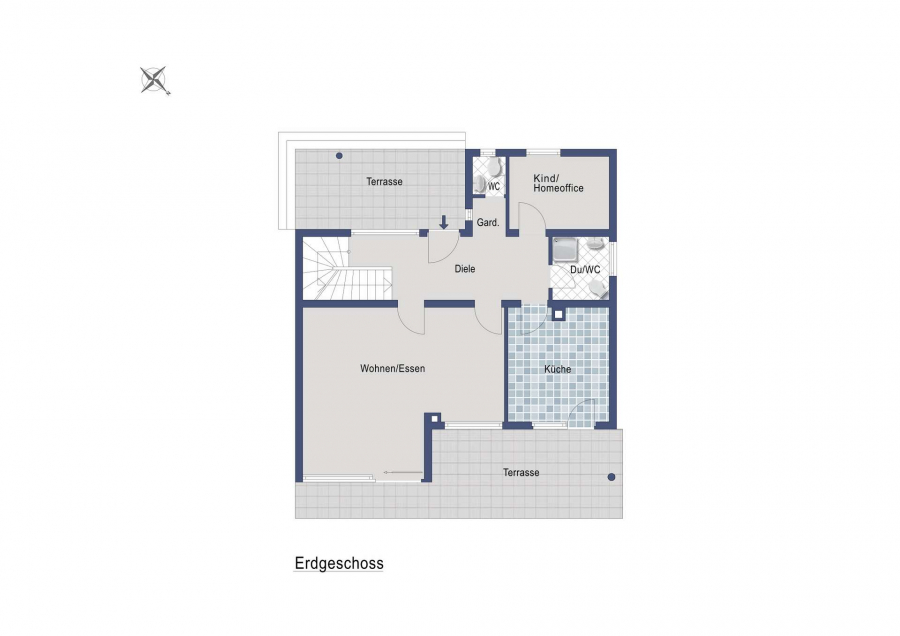 Das Erdgeschoss des Hauses erstreckt sich über ein großzügiges Entrée, einen schönen Wohn- Essbereich, einer Wohnküche, die im Zuge des Einbaus einer neuen Einbauküche zum Essbereich hin geöffnet werden könnte, einem barrierefreien Tageslichtduschbad, einem Homeoffice sowie einem Gäste-WC. Vom Wohnzimmer und der Wohnküche gelangt man auf die großzügige, teilweise überdachte Terrasse und in den Garten.