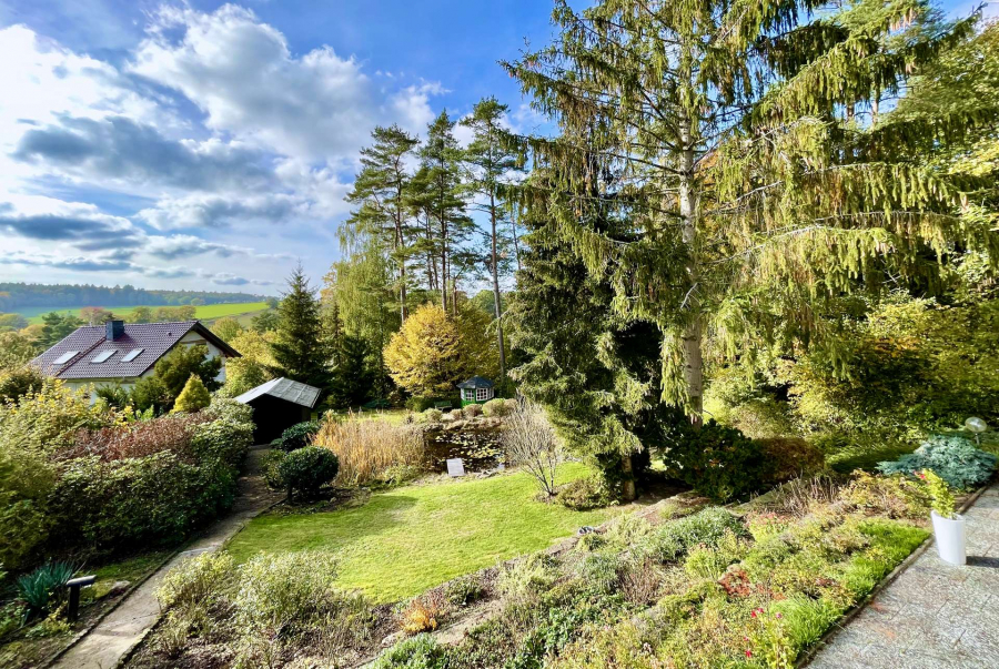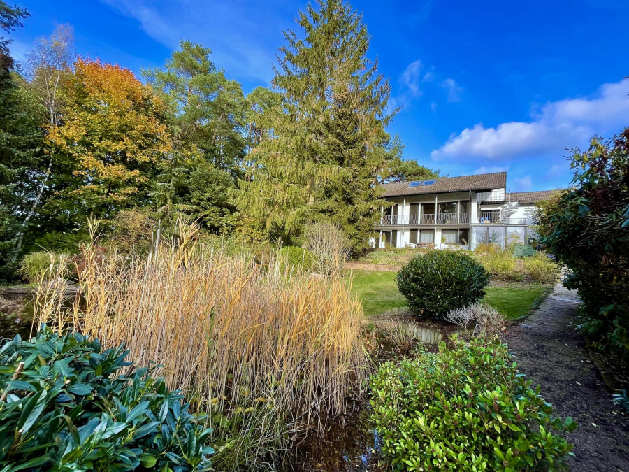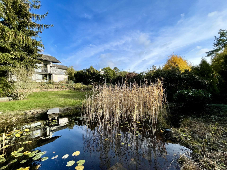 Das Objekt befindet sich auf einem traumhaften, parkähnlichen ca. 1.883 Quadratmeter großen, hochwertig angelegten Grundstück, in leichter Hanglage mit einer wunderschönen Teichanlage von ca. 90 Quadratmetern, einem Bachlauf sowie einem Gartenpavillon. Das bebaute Grundstück umfasst ca. 844 Quadratmeter, das untere Baugrundstück ca. 1.039 Quadratmeter.