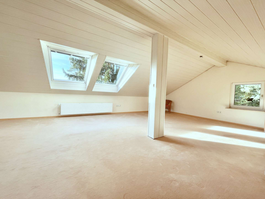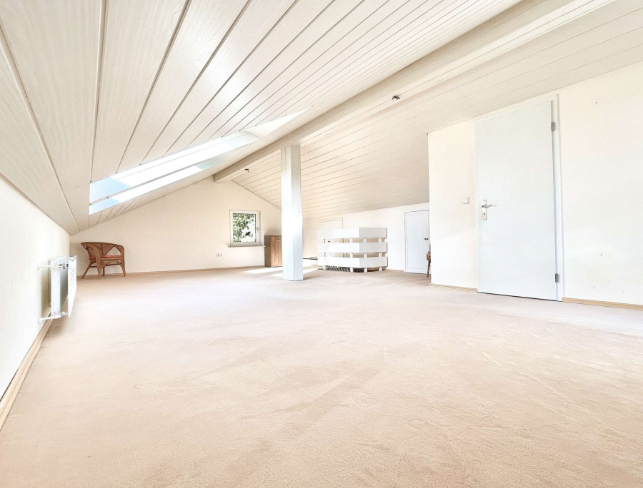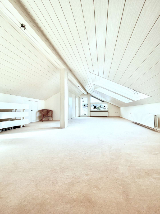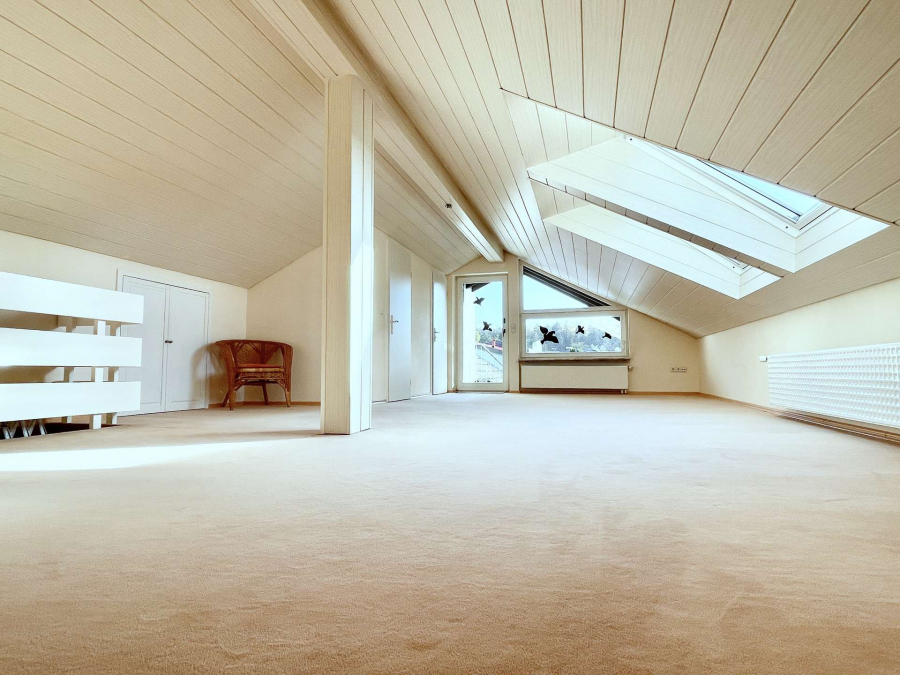 1996 wurde das sonnendurchflutete Dachstudio inklusive einem WC ausgebaut, das einen perfekten Lebensraum für ein größeres Kind bieten könnte. Alternativ würde sich das Dachstudio auch als geräumiges Homeoffice oder Schlafzimmer anbieten.