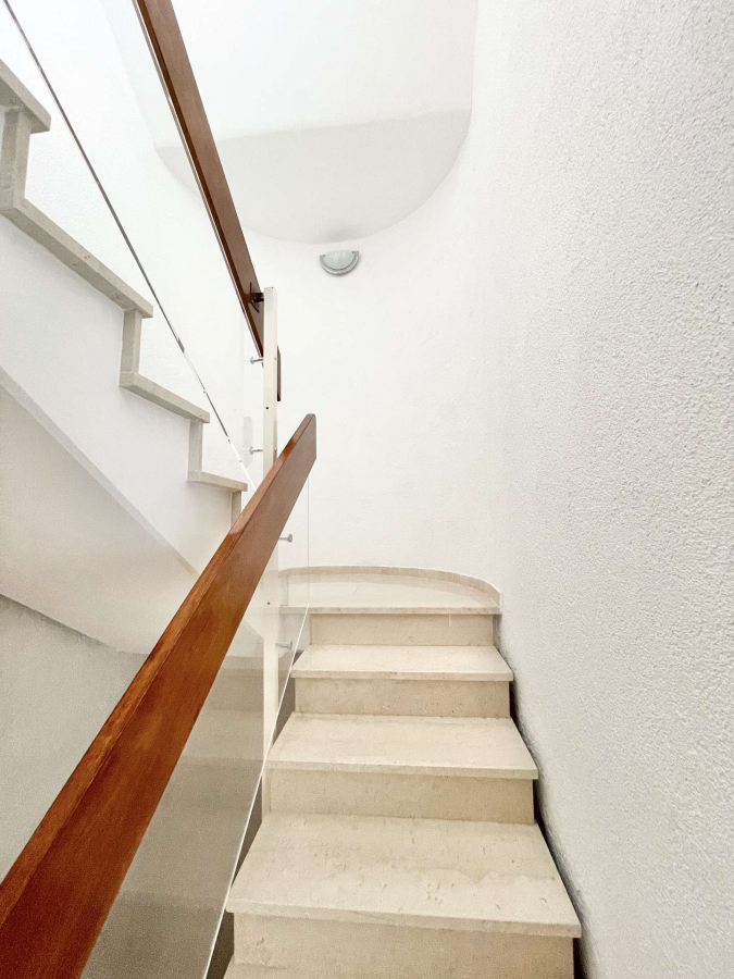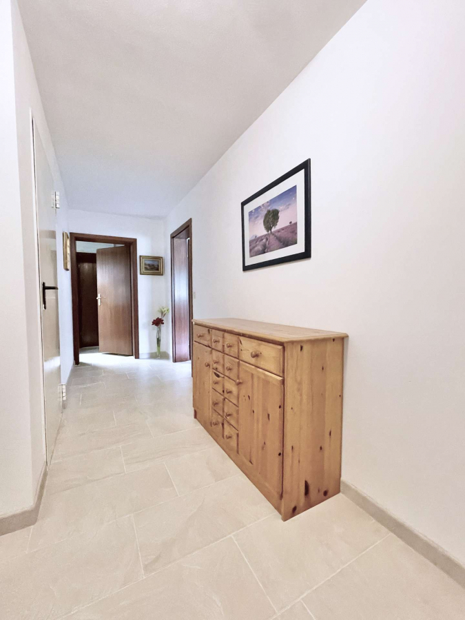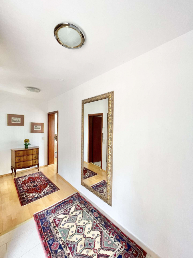 Das helle Obergeschoss verfügt über eine helle Diele, einem Schlafzimmer, einem weiteren großen Schlaf- oder Kinderzimmer mit Südbalkon und einem Tageslichtbad.