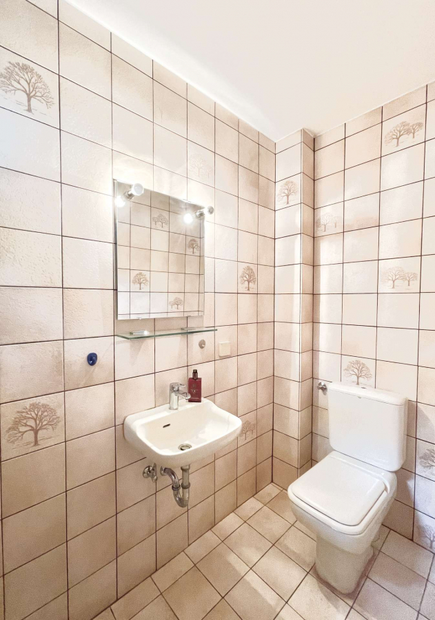 Im Untergeschoss mit eigenem Eingang befindet sich ein großer, mit Fenstern belichteter Hobbyraum von ca. 28 m², ein Bad und eine Küche. Hier könnte z.B. ein größeres Kind sein eigenes Reich haben. Alternativ wären diese Räumlichkeiten auch perfekt als Homeoffice zu nutzen. Ein Vorratsraum sowie ein Technik- und Waschraum sind ebenso im Kellergeschoss zu finden.