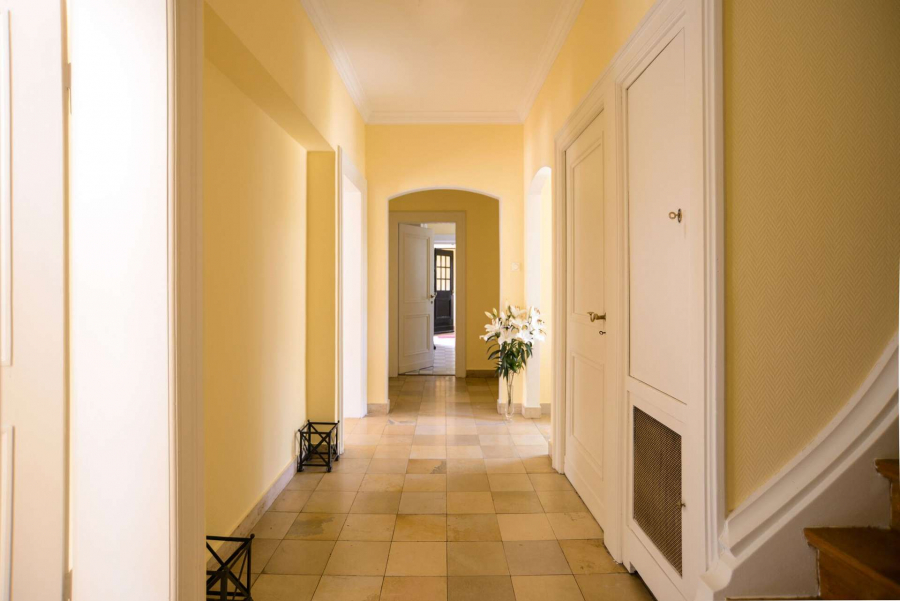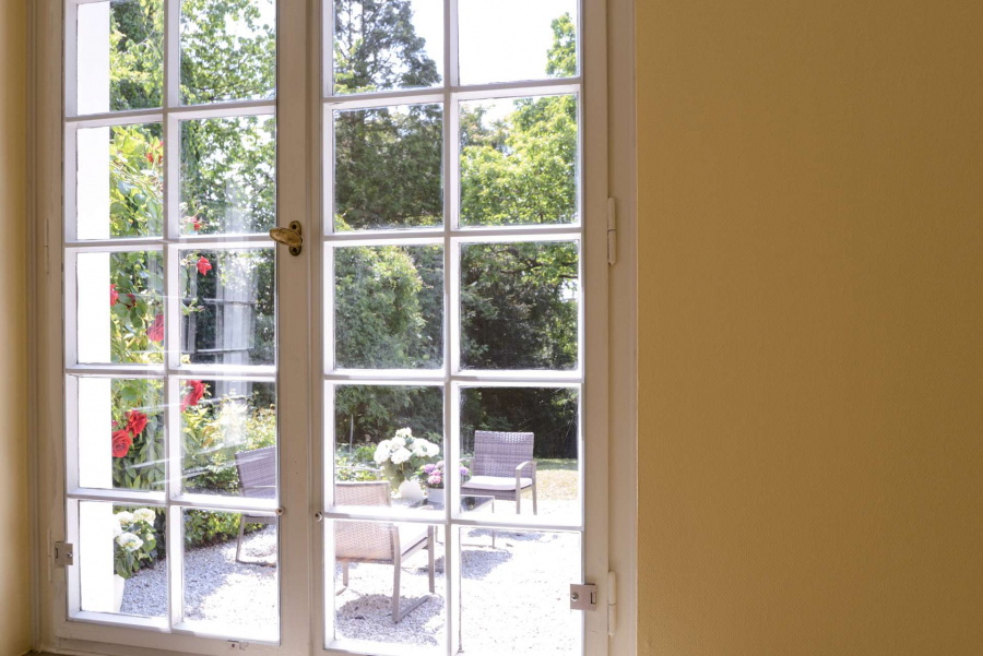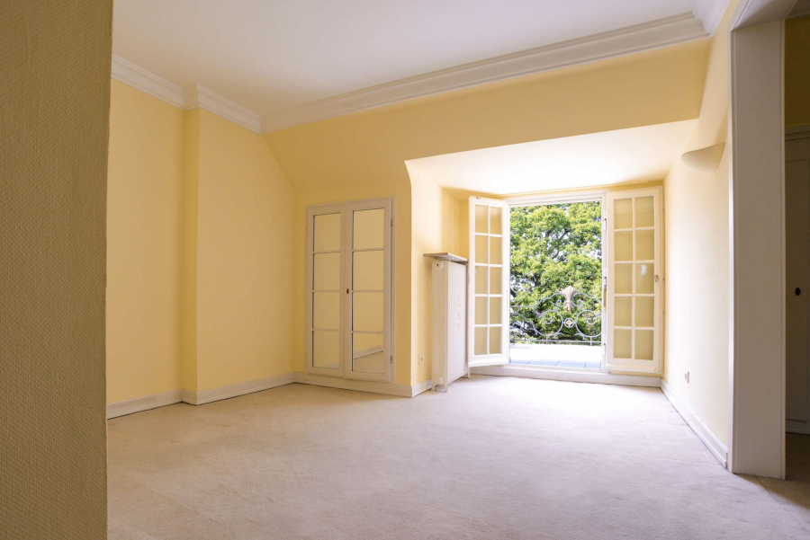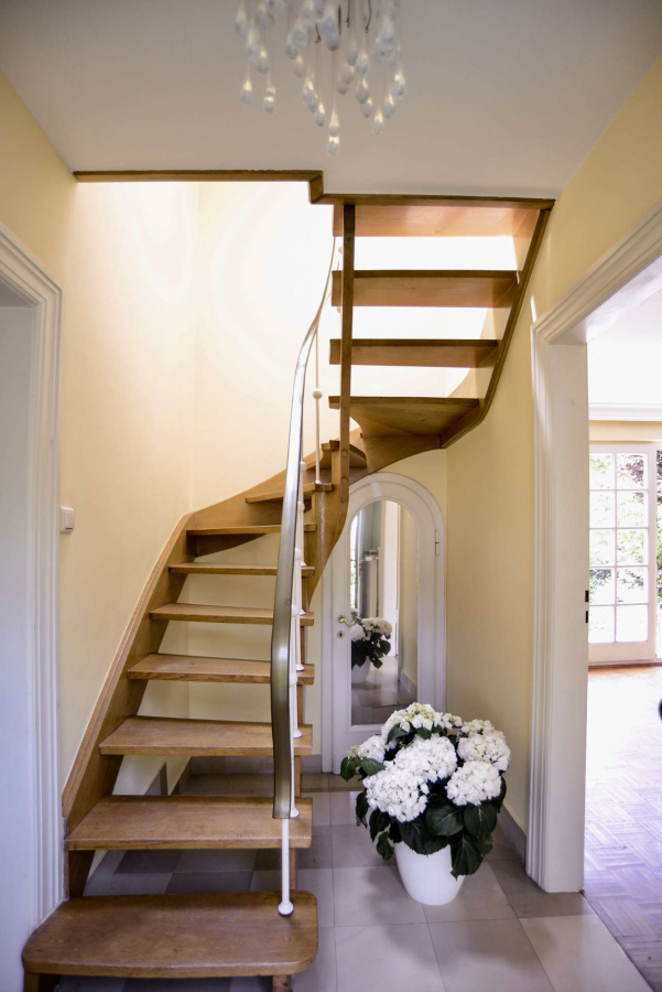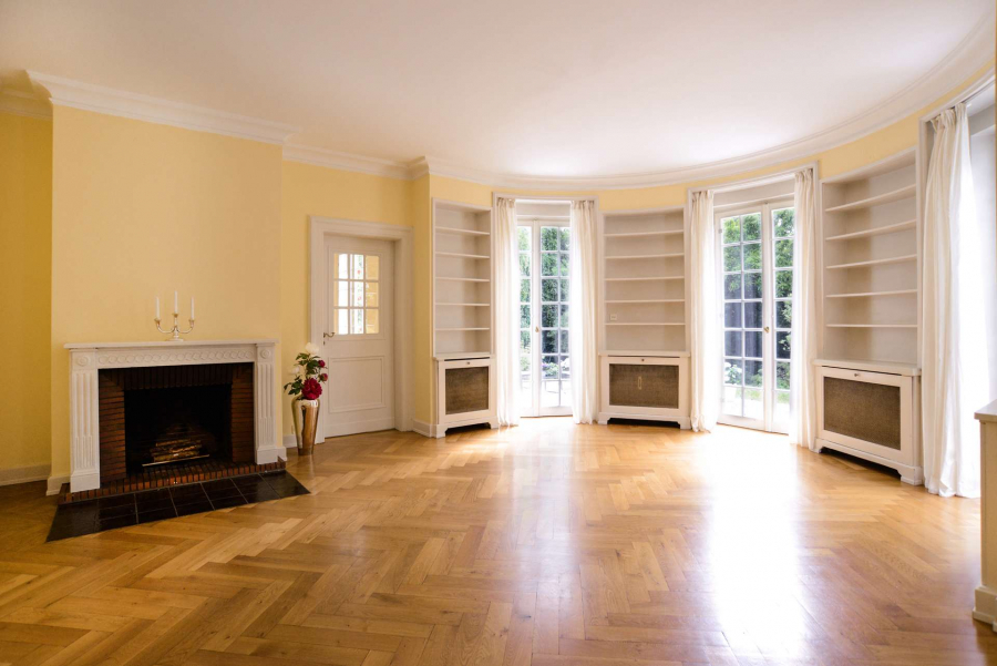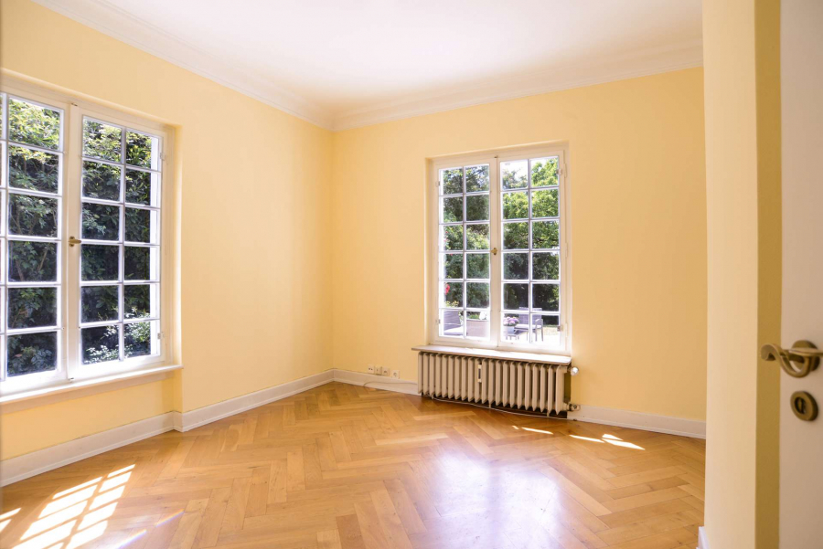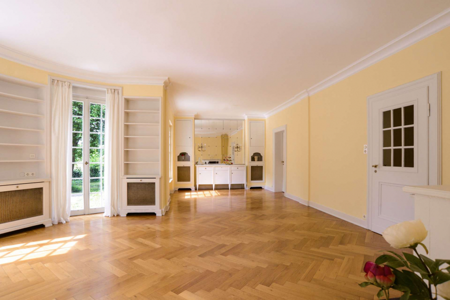 Schon beim Betreten der Villa mit Blick durch das Entrée in den repräsentativen lichtdurchfluteten Wohnbereich und Garten verspürt man den Charme dieses Anwesens und kann sich an den wunderschönen Stilelementen, den Parkettböden, den Stiltüren mit Glaseinsätzen, den aufwändigen Schrankeinbauten und den bodentiefen Sprossenfenstern mit den französischen Fensterläden erfreuen.