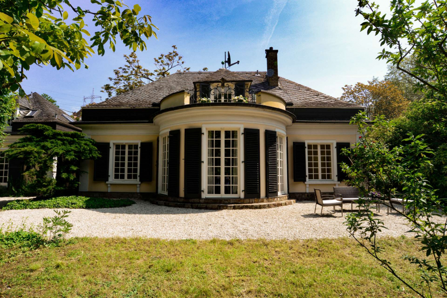 Dieses stilvolle und charmante Villenanwesen wurde 1958 erbaut und befindet sich in der Nähe des Henkellparks. Das Gebäudeensemble präsentiert sich aus einem Haupthaus und einem angrenzenden Nebenhaus, eingebettet in einem von der Gartenseite uneinsehbarem parkähnlichen Südwest Grundstück mit altem Baumbestand.
