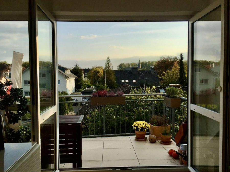 Die Wohnung erstreckt sich über zwei Ebenen. Im unteren Bereich befinden sich ein großzügiges lichtdurchflutetes Wohnzimmer mit angrenzendem Essbereich und Küche sowie ein schöner Süd-West Balkon mit toller Aussicht, ein Flur, ein Kinder- oder Arbeitszimmer mit kleinem Balkon und ein Duschbad mit Tageslicht.