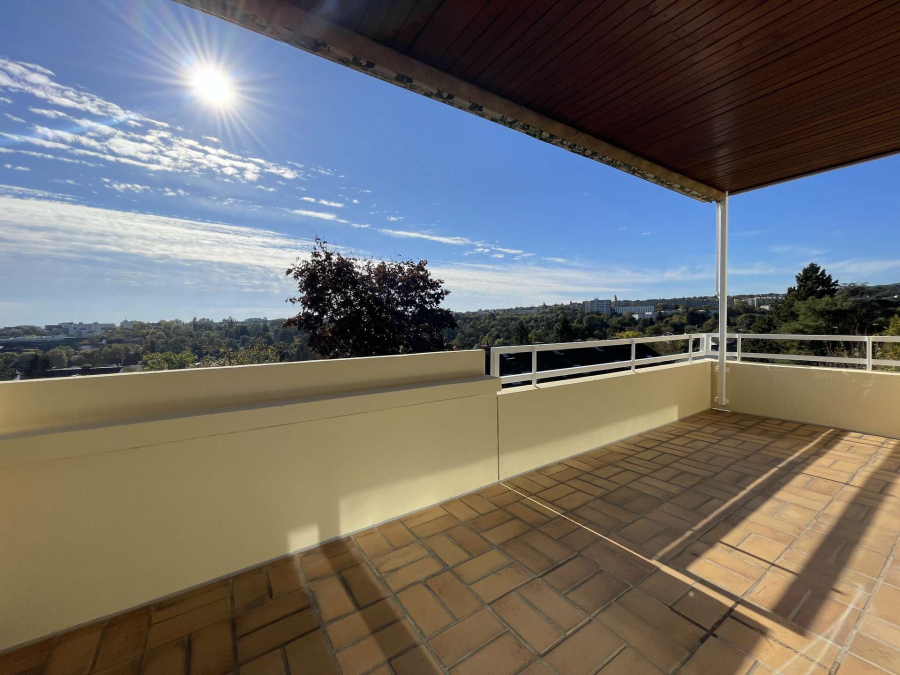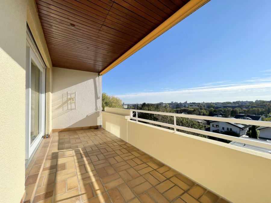 Die Wohnung erstreckt sich über eine geräumige Diele, einem großzügigen Wohnzimmer von ca. 34 m² mit Zugang zum Südbalkon mit tollem Ausblick sowie einem weiteren angrenzenden großen Zimmer mit einer Terrasse, in das man auch eine Wohnküche oder ein weiteres Bad einbauen könnte.