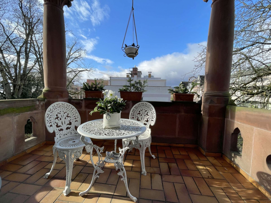 • 1 angrenzender kleiner Südwest-Balkon mit Stilelementen