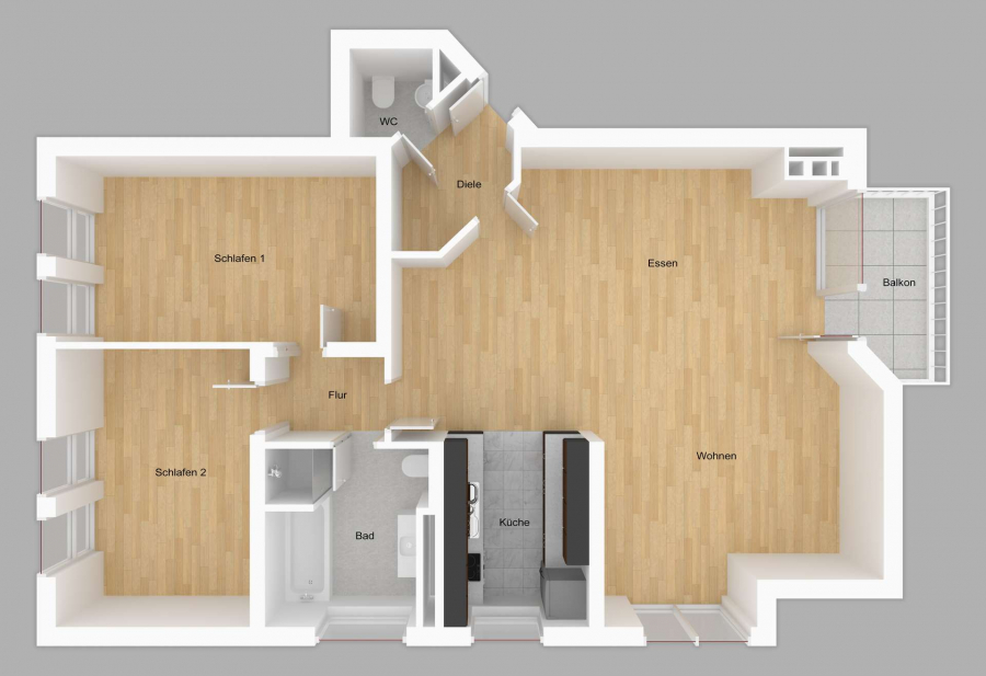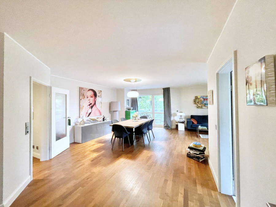 Die helle Eigentumswohnung besticht durch Ihr gut durchdachtes Raumkonzept sowie den schönen Ausblick in die Gärten der umliegenden Altbauvillen. Im Eingangsbereich befindet sich ein Flur mit Garderobenbereich und ein Gäste-WC. Das großzügige Wohn- Esszimmer bietet mit ca. 42 Quadratmetern und dem angrenzenden Südbalkon ein tolles Wohnambiente. Die bodentiefen Fenster sorgen in allen Wohnräumen für eine helle Belichtung. Vom Balkon kann man einen schönen Fernblick und die Aussicht in den umliegenden Baumbestand genießen. Ein wunderschönes Plätzchen, um die warmen Jahreszeiten zu verbringen. An das Wohn- Esszimmer grenzt die Küche an. Durch einen kleinen weiteren Flur gelangt man in den Privatbereich der Wohnung, der sich über ein Schlafzimmer, ein Kinderzimmer oder Homeoffice erstreckt und ein 2009 renoviertes stylisches Tageslichtbad, mit Dusche und Badewanne. Ebenso wurde 2009 neues Parkett in der kompletten Wohnung verlegt.