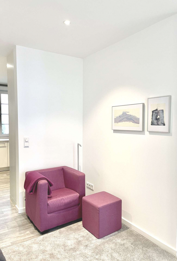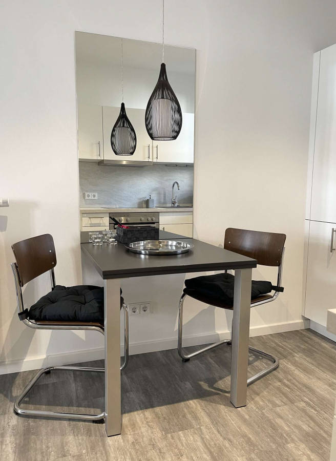 Dieses sehr geschmackvolle und hochwertig ausgestattete Apartment befindet sich in einer absolut ruhigen Lage, in einem top sanierten Zweifamilienhaus. Es verfügt über eine moderne und komplett ausgestattete Einbauküche, ein Tageslichtbad mit großer Dusche und einen hellen, stylisch eingerichteten Wohnbereich. Das Schlafzimmer ist durch eine Wandscheibe abgetrennt.